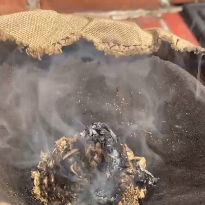 モグサ(よもぎの葉)をいぶし、背中全体、尻、足、お腹を中心に骨の髄から温めていきます。